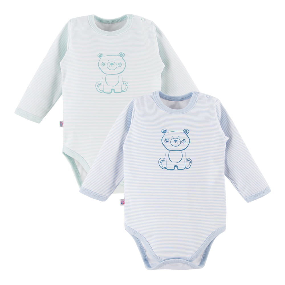2-pack of long-sleeve baby bodysuits from the Big Bear collection is a practical and comfortable set for the youngest children. The set includes two bodysuits with an adorable teddy bear motif – one in blue and the other in mint.