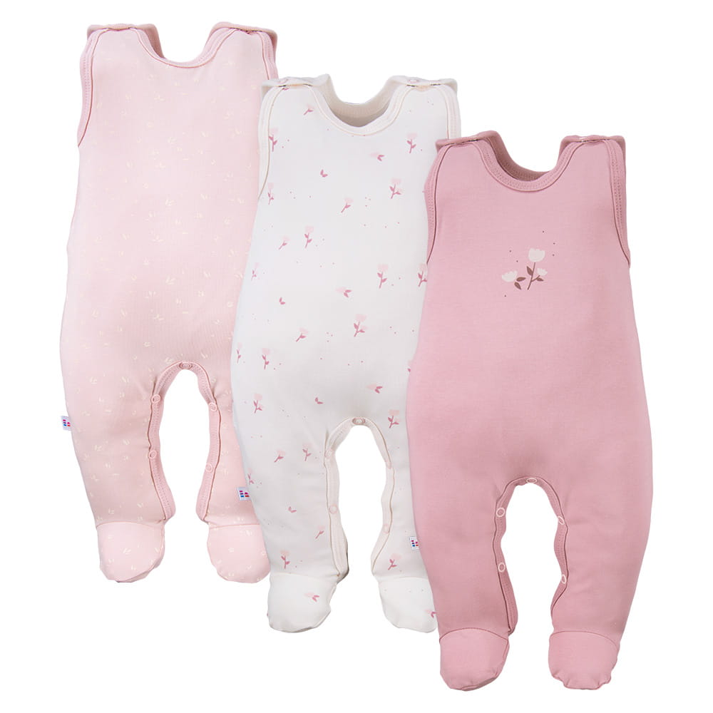 Set of 3 baby rompers is an excellent choice for the first months of a child’s life and a perfect part of every layette. The rompers provide comfort, warmth and freedom of movement for the baby while protecting the feet from cooling down.