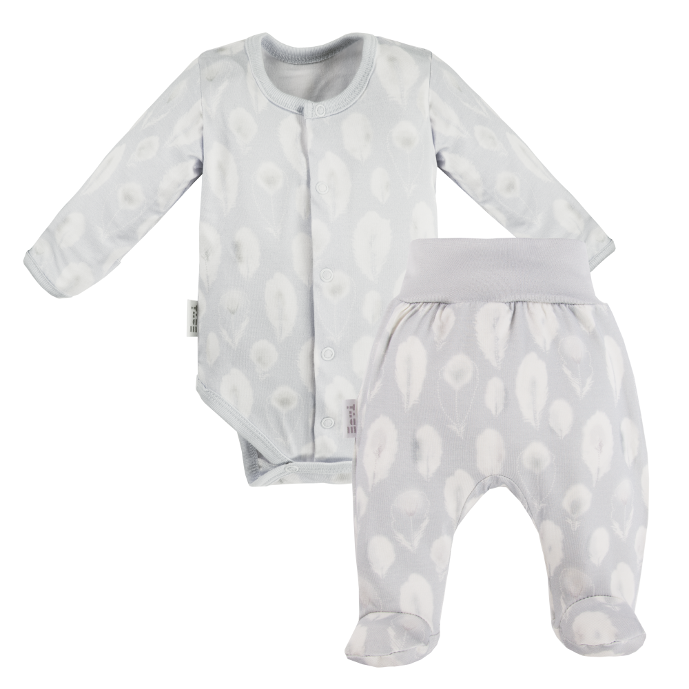 Baby set bodysuit and footed pants grey with feathers – Bamboo collection