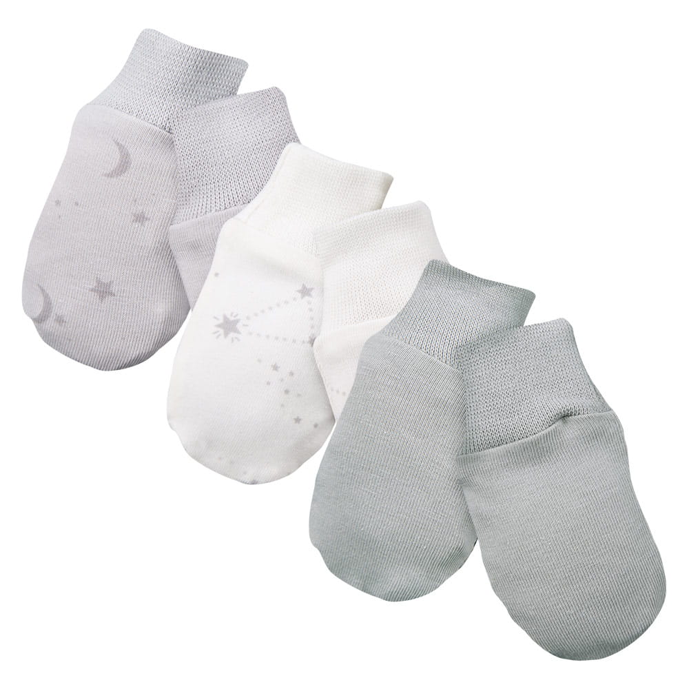 Grey Baby Mittens 3-Pack with Star Pattern – Petite Collection