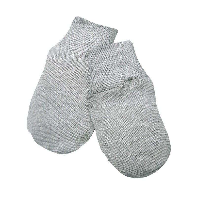 The model in a universal grey color is finished with a gentle, non-pressure cuff, ensuring the mittens stay securely on small hands without slipping off during movement. An essential item in every newborn layette.