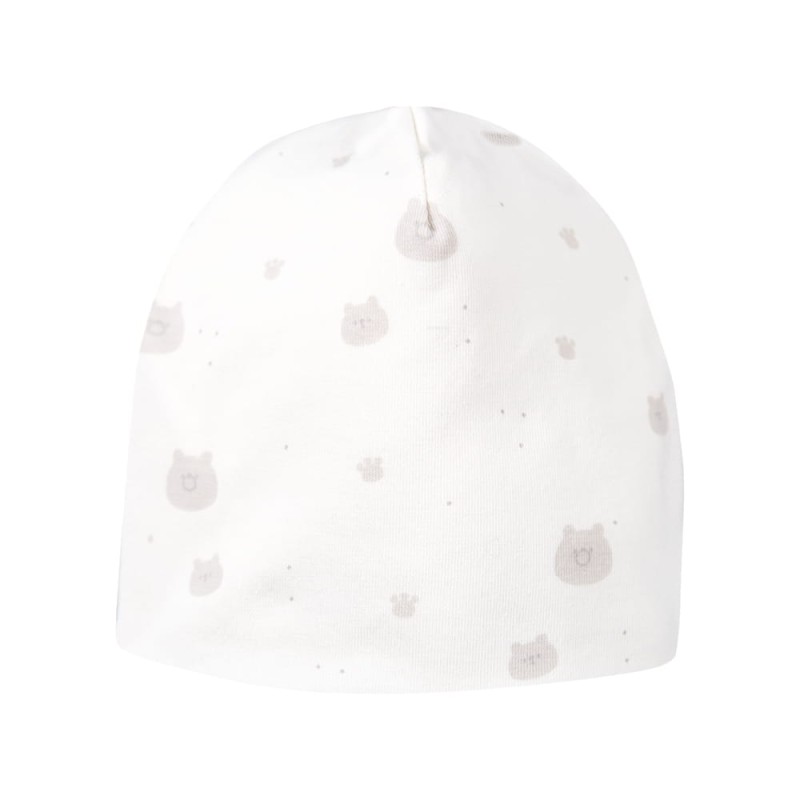 This is a practical item for a baby layette, suitable both at home and during walks. The subtle bear motif gives the hat a cute and cozy character.