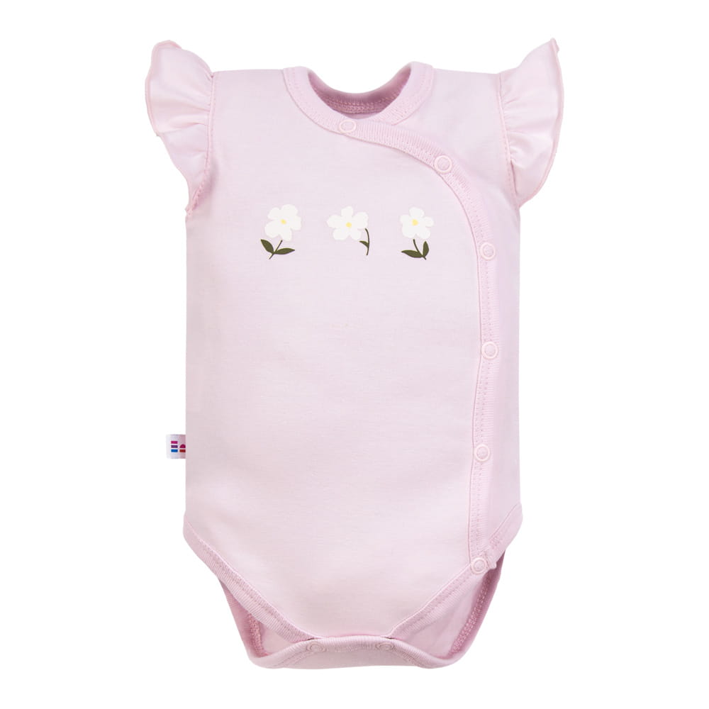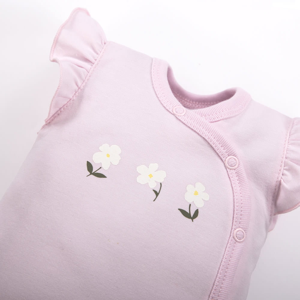 Baby pink envelope bodysuit with straps and flowers