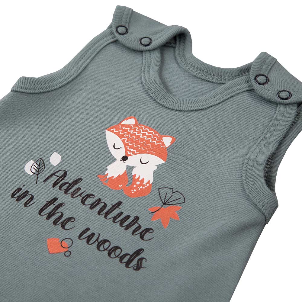 Baby set from ADVENTURE collection made from soft and pleasant to the touch cotton knit. At the front of the romper suit there is a cute fox print. The cut allows it to be fully unbuttoned, making the clothes functional and comfortable.Kimono shirt has a leaf print. Baby sets are perfect for the first months of a child's life. Baby sets will be a great gift idea for a new mother.
