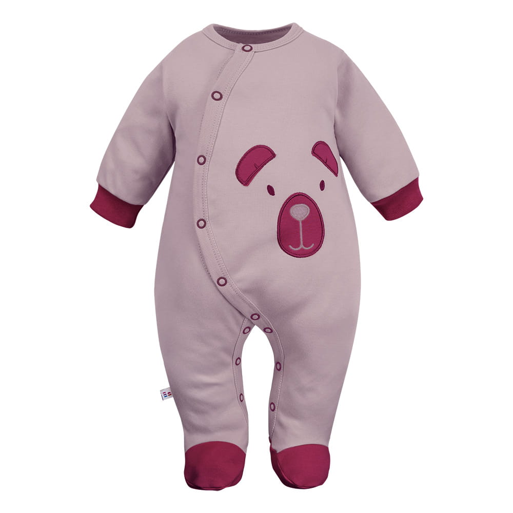 Baby sleepsuit pink with bear embroidery – Beary Cool Collection