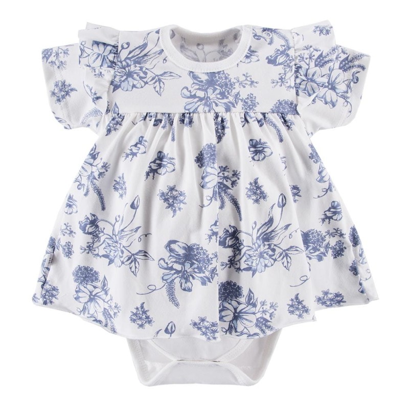 Body-tunic with frill white with blue flowers