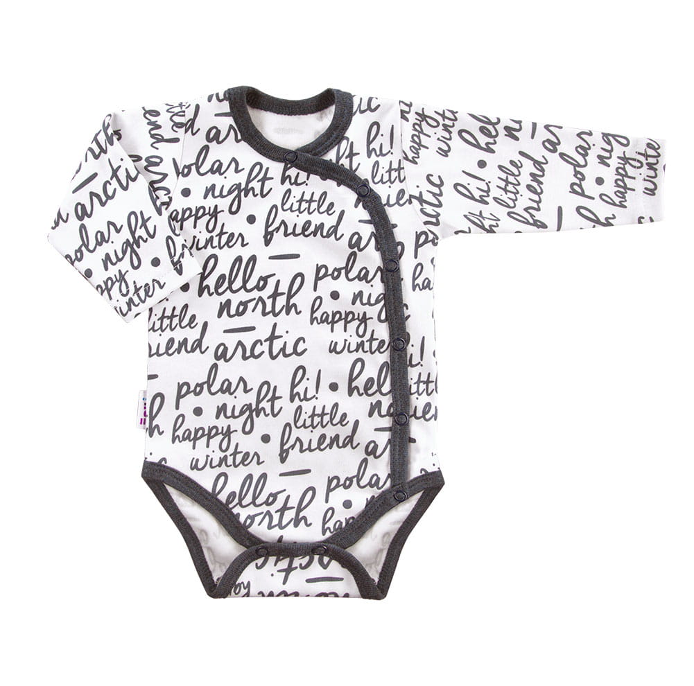 Bodysuit cardigan with long sleeves from the "SNOW" collection made from&nbspsoft and pleasant to the touch printed cotton knit.The cut allows full opening, making the body functional and comfortable. Bodysuit is finished with a soft piping. The sleeve is rolled up. Baby bodysuits are perfect  for the first months of a child's life and belong  to the most frequently chosen assortment by mothers.