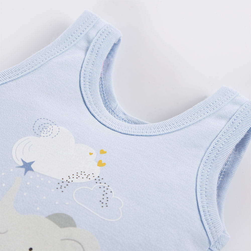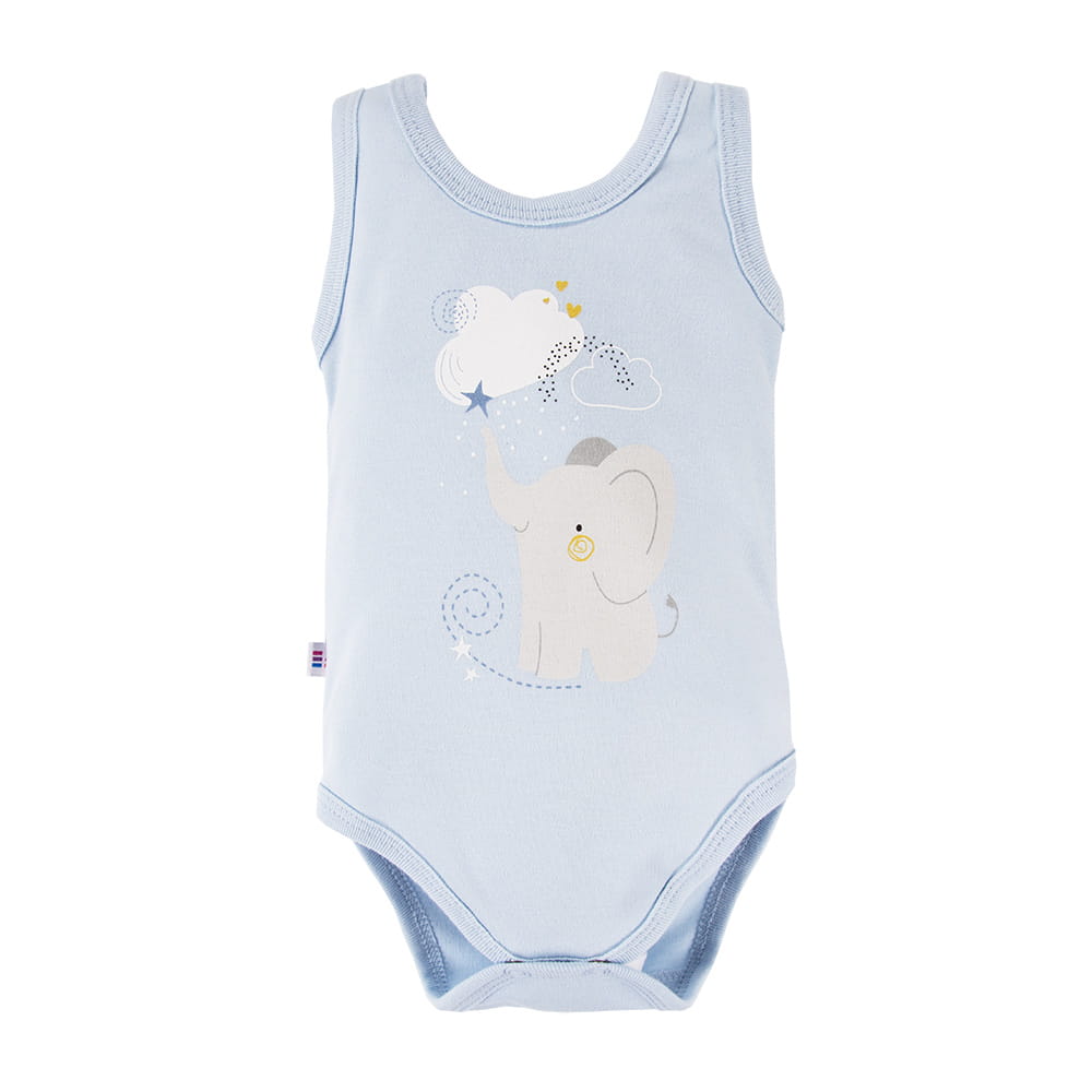 Sleeveless Blue Baby Bodysuit with Elephant – Mellow Collection
