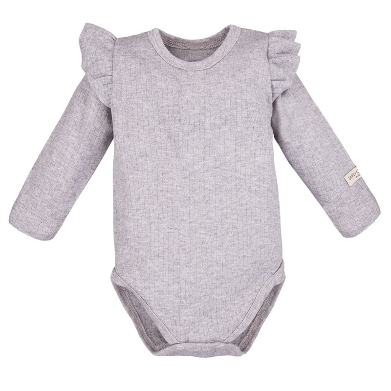 Bodysuit with long sleeves from the SIMPLY COMFY collection made from&nbspsoft and pleasant to the touch cotton knit. Frills on the shoulders. The cut allows easy opening, making the body functional and comfortable. Bodysuit is finished with a soft piping. Baby bodysuits are perfect  for the first months of a child's life and belong  to the most frequently chosen assortment by mothers.