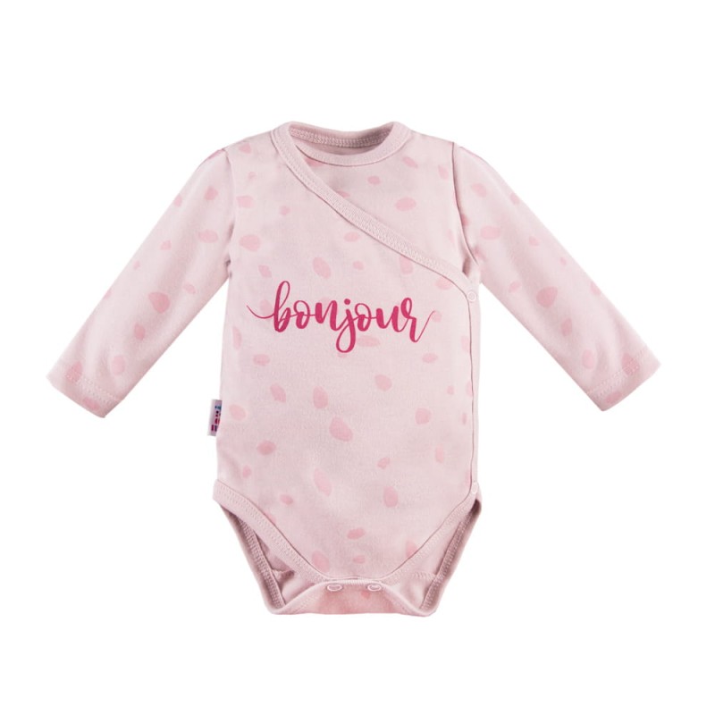 Bodysuit cardigan from UNIQUE collection made from a soft and pleasant to the touch fabric.There is an inscription on the front of the body. The cut allows to open it completely, thanks to which the body is functional and comfortable. Body finished with a soft trim. Baby bodysuits are perfect for the first months of a child's life and belong to the most frequently chosen assortment by mothers.