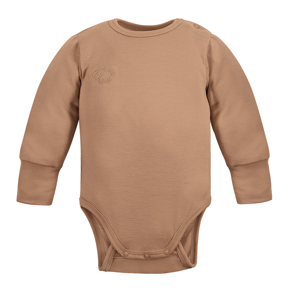 Caramel merino wool bodysuit is an exceptionally soft and functional garment for older babies and toddlers. Made from 100% high-quality merino wool, it provides excellent thermoregulation – keeps warm on colder days while remaining breathable and moisture-wicking for year-round comfort.