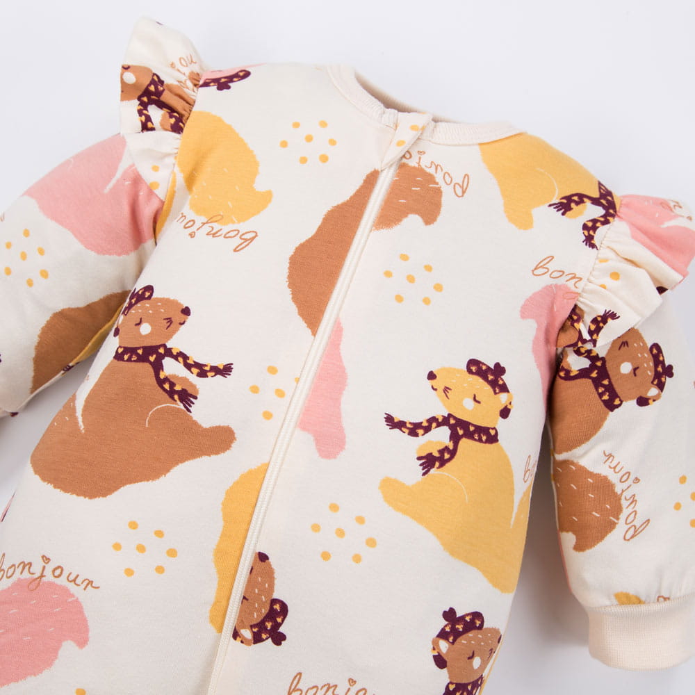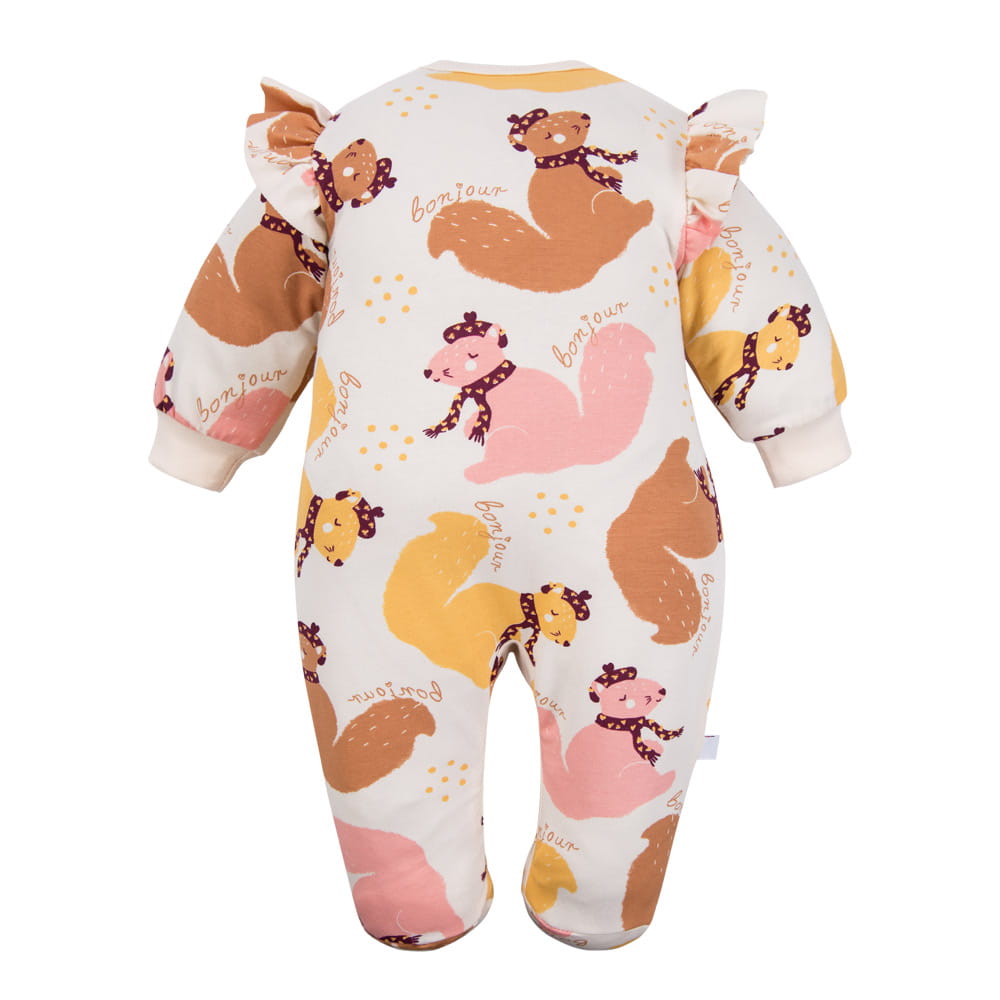 Baby Romper with Feet and Large Squirrel Print – Fluffy Tails Collection