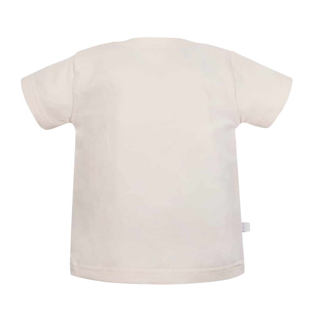 Charming and comfortable T-shirt for girls made from a fabric containing 95% cotton and 5% elastane. The T-shirt is in a delicate ecru color and features a print of smiling cherries in the center, giving it a cheerful and girly character. The soft and stretchy fabric ensures comfort and makes the T-shirt perfect for everyday wear and play.