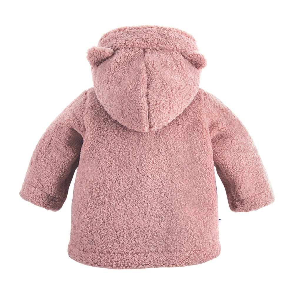 Pink girl's sweatshirt This children's sweatshirt is made of faux lamb fabric, and has a cotton lining on the inside. This makes the sweatshirt soft and very warm, making it perfect for winter. Basic sweatshirts and pants, when paired with colorful t-shirts or children's bodysuits, create a lovely outfit.