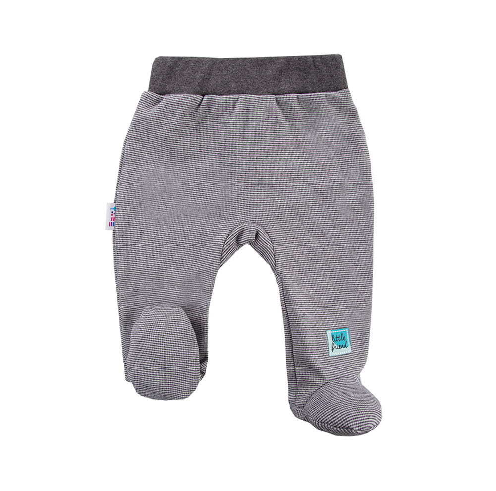Joggers with feet from SNOW collection made from soft and pleasant to the touch knit. With a welt and a rubber band that does not hurt the baby's tummy. Finished with a contrasting welt. Feet made of smooth fabric. Print on the foot. The baby's covered feet, which will be protected from the cold, are a plus.