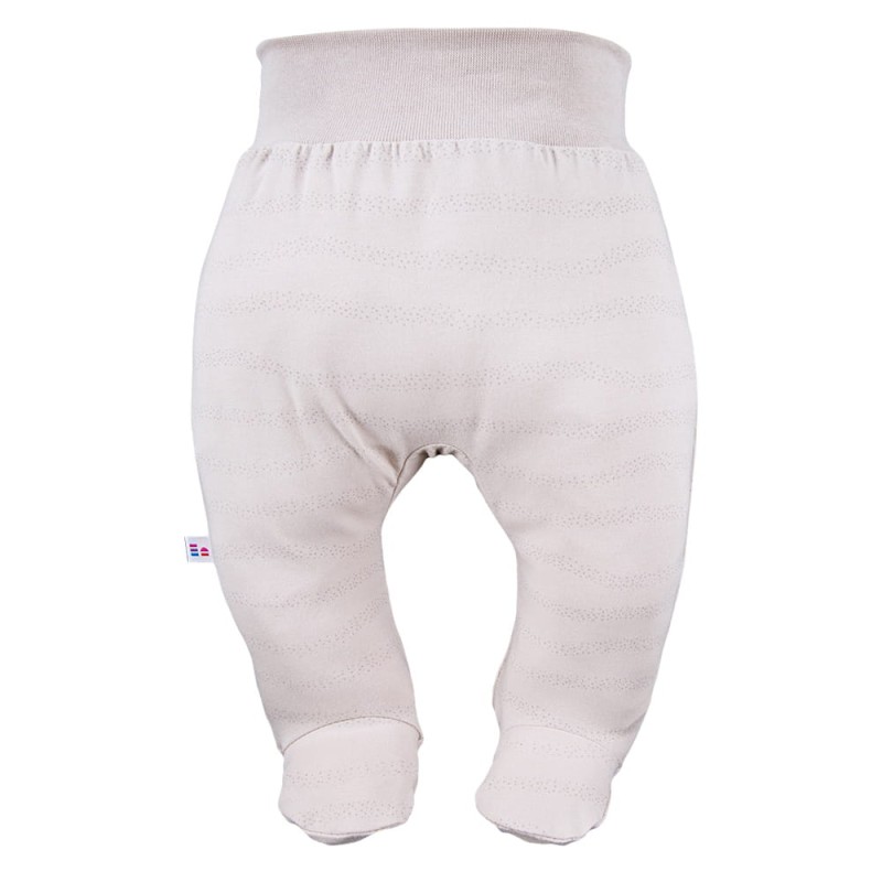 Baby footed joggers in beige with a delicate print are a universal and practical element of a baby’s wardrobe. They are perfect for every season – both for babies born in winter and summer. They provide thermal comfort and everyday convenience.