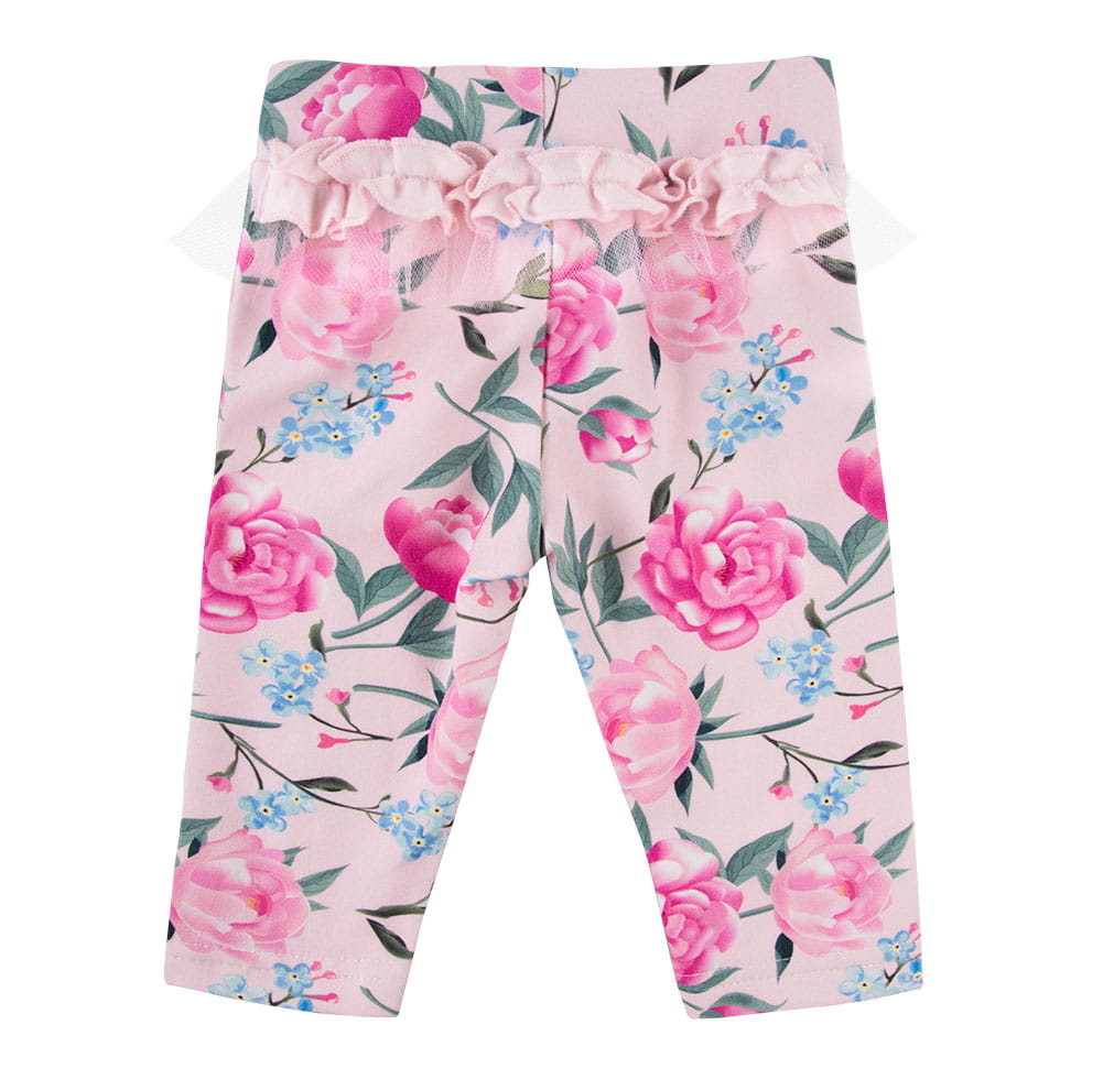 Leggings from PEONY collection made from soft and pleasant to the touch knit. In the waist there is a welt and rubber that does not hurt the baby's tummy. Comfortable leggings are a garment that should be in every baby's wardrobe.