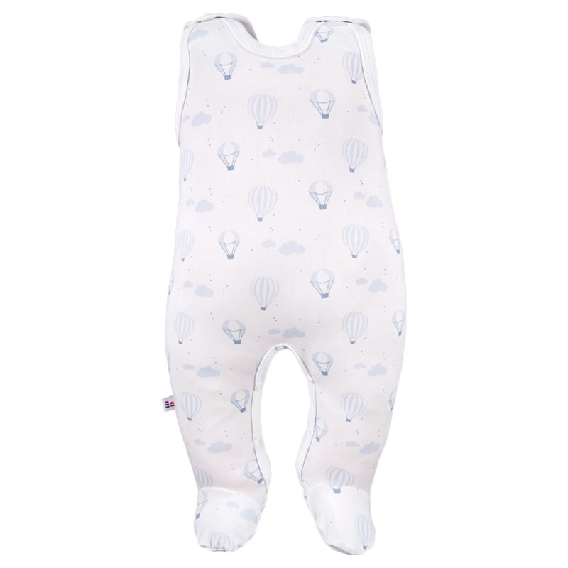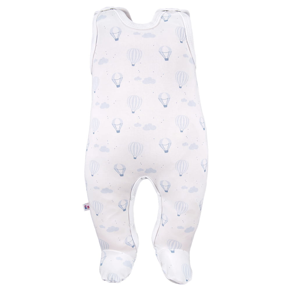 Baby sleepsuit in white with a cute blue balloon pattern is a perfect choice for the first months of a child’s life. It is one of the essential elements of a newborn layette – providing comfort, warmth and full freedom of movement from the very first days.