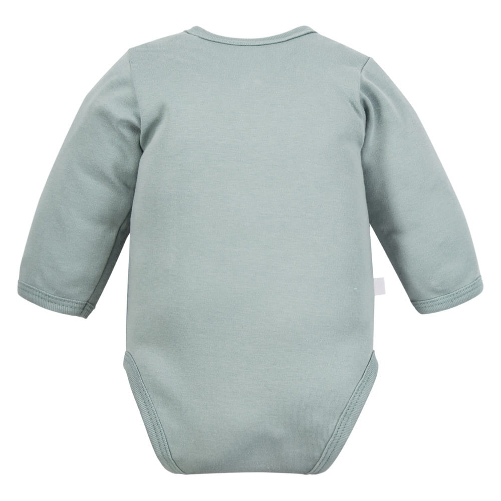 The sage green wrap-style baby bodysuit from the Beary Cool collection is designed with your little one’s comfort in mind from day one. Adorable bear print on the chest and a delicate color make it visually charming, while its functional design and 100% cotton ensure everyday comfort.
