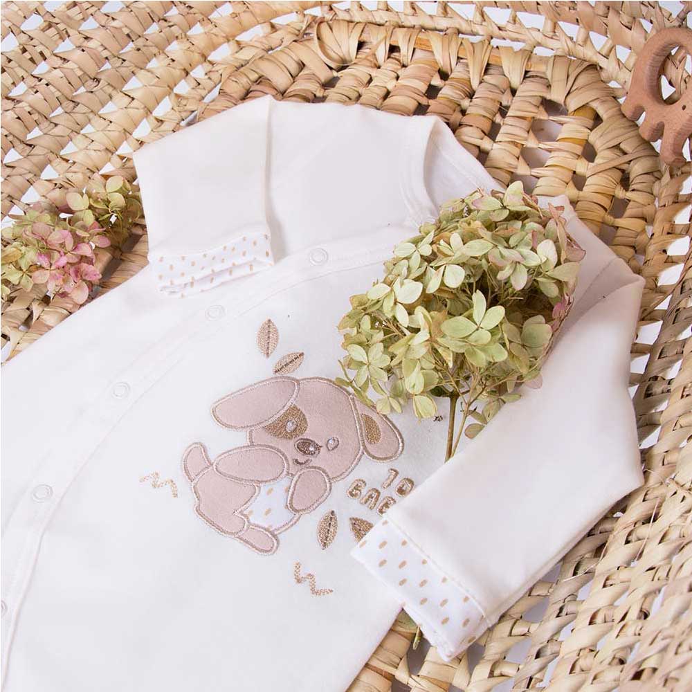 Ecru Baby Sleepsuit with Puppy – Newborn Collection