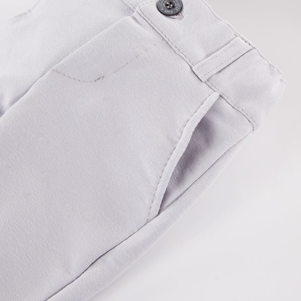 Boys’ trousers from the Ceremony collection in grey, made from soft and pleasant-to-touch sweatshirt fabric in shades of grey and navy, are a stylish and comfortable choice for little ones. The button fastening and a subtle eco-leather patch on the pocket add a refined touch.