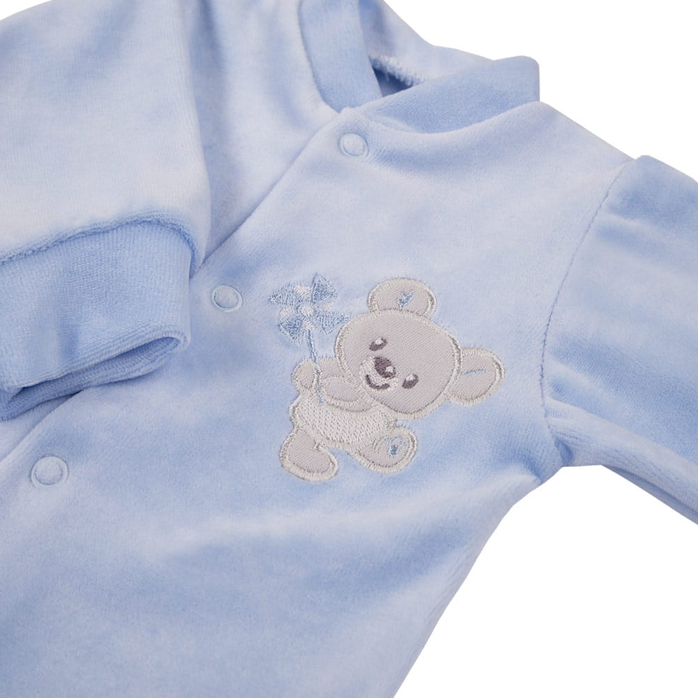 Blue Velour Baby Sleepsuit with Koala – Newborn Collection