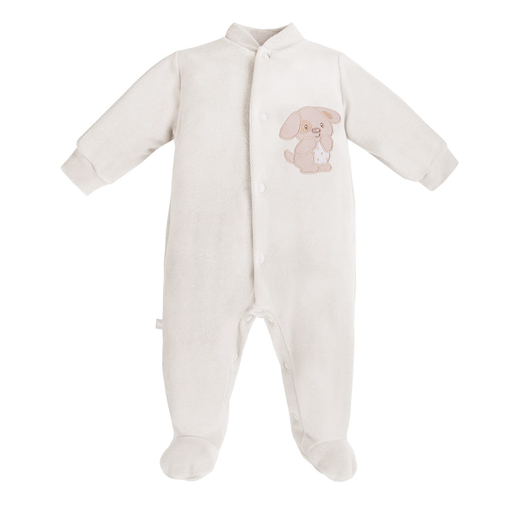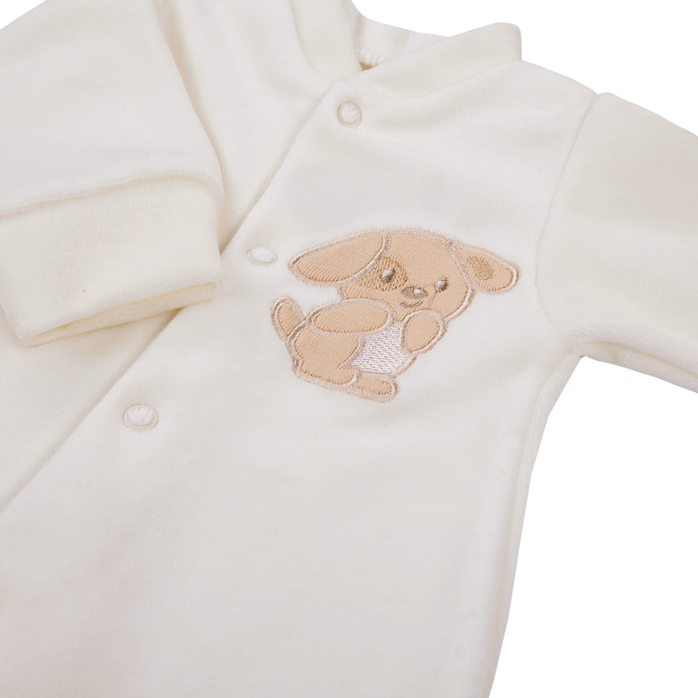 Ecru Velour Baby Sleepsuit with Puppy – Newborn Collection