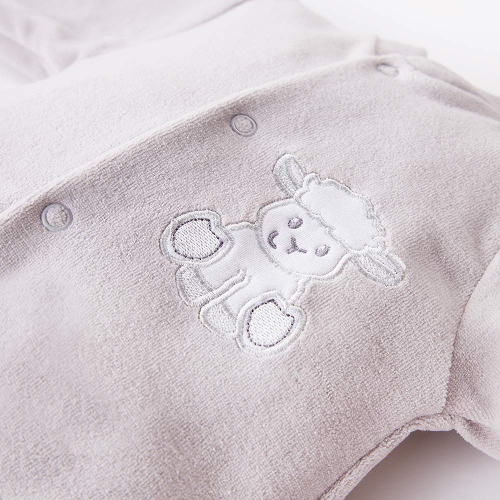 Gray Velour Baby Sleepsuit with Lamb – Newborn Collection