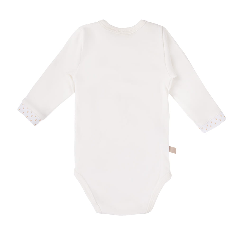 - Praktyczne zapięcie kopertowe – ułatwia ubieranie i przewijanie niemowlęcia.