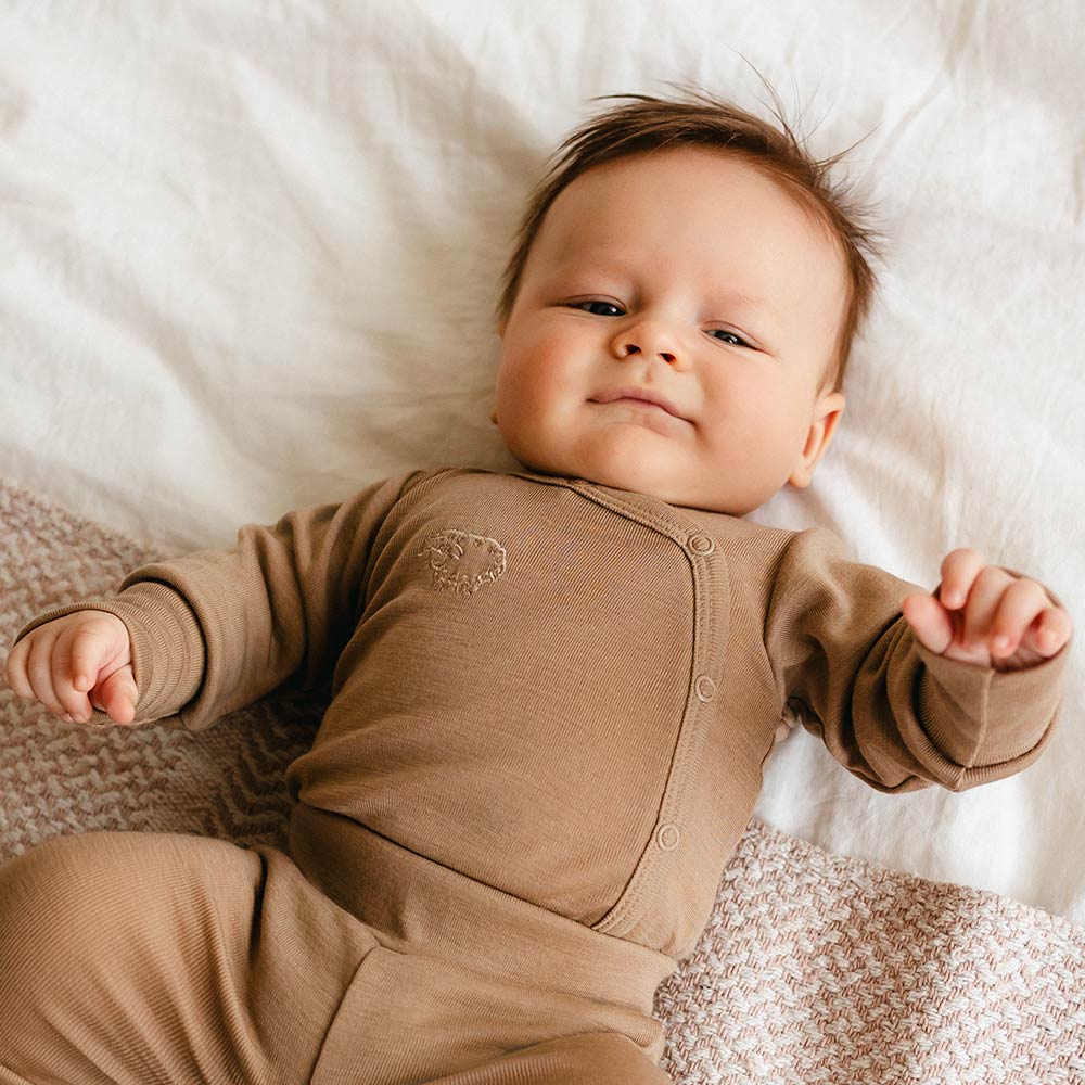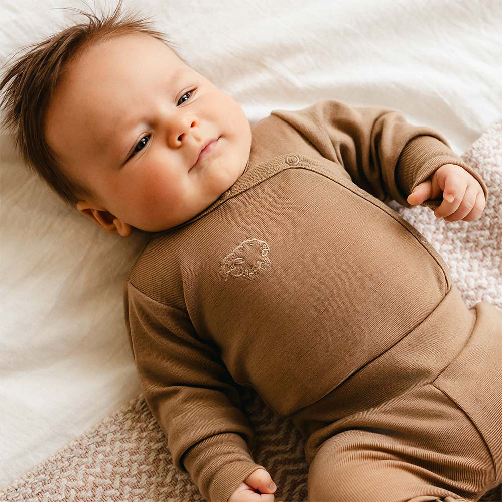 Karmelowe body kopertowe z wełny merino to wyjątkowo miękka i funkcjonalna propozycja dla niemowląt, zaprojektowana tak, aby rosła razem z dzieckiem. Wykonane w 100% z wysokiej jakości wełny merino, zapewnia doskonałą termoregulację – ogrzewa w chłodne dni, a jednocześnie oddycha i odprowadza wilgoć.
