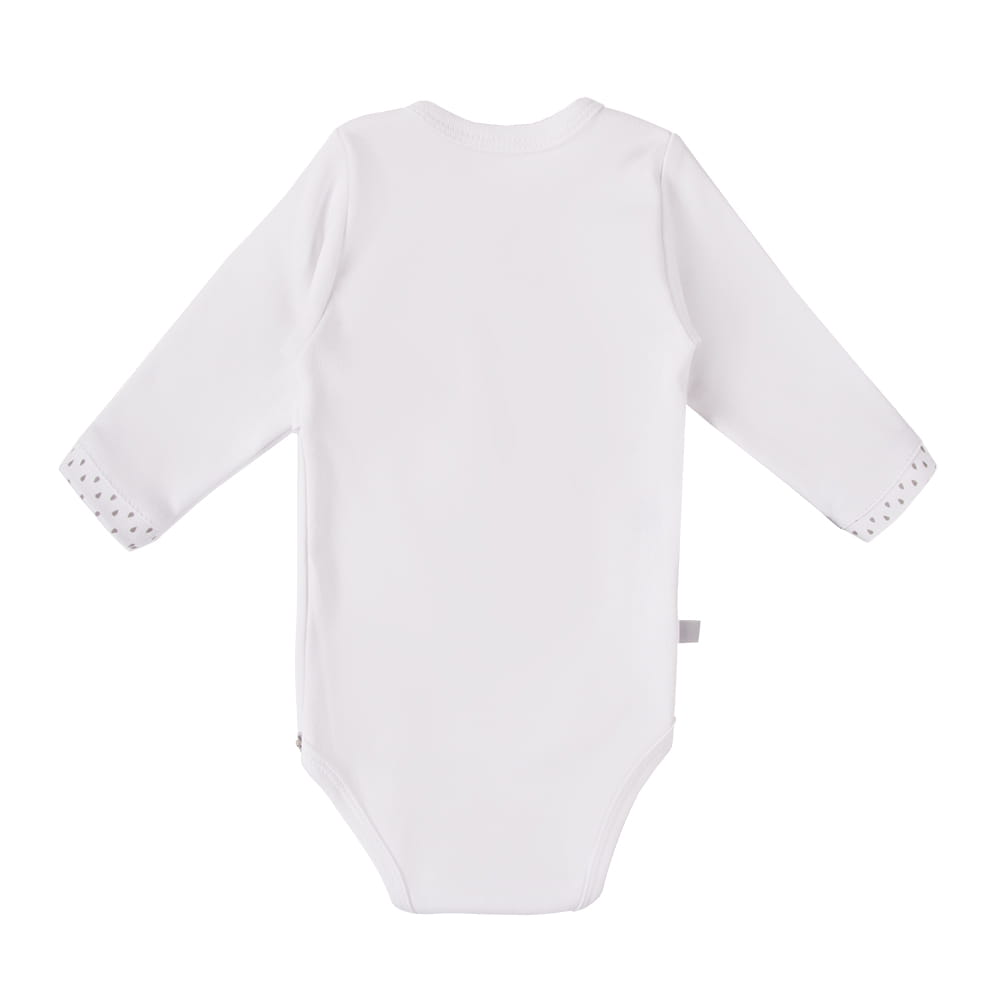 - Praktyczne zapięcie kopertowe – ułatwia ubieranie i przebieranie niemowlęcia.