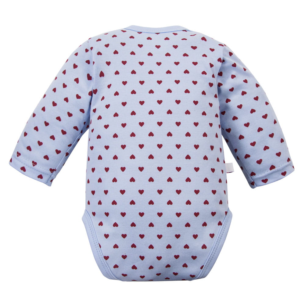Body niemowlęce kopertowe niebieskie w serca – Kolekcja Love