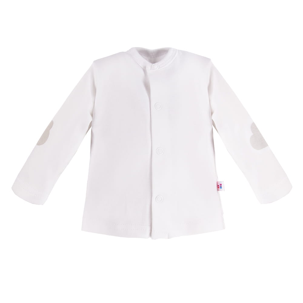 Na rękawku kaftana znajduje się uroczy motyw chmurki, który dodaje całości subtelnego, dziecięcego charakteru. Praktyczny krój umożliwia całkowite rozpięcie, dzięki czemu kaftan jest niezwykle funkcjonalny i wygodny podczas codziennego ubierania oraz przewijania maluszka. Kaftany niemowlęce doskonale sprawdzają się w pierwszych miesiącach życia i w połączeniu ze śpiochami niemowlęcymi tworzą idealny komplet wyjściowy.