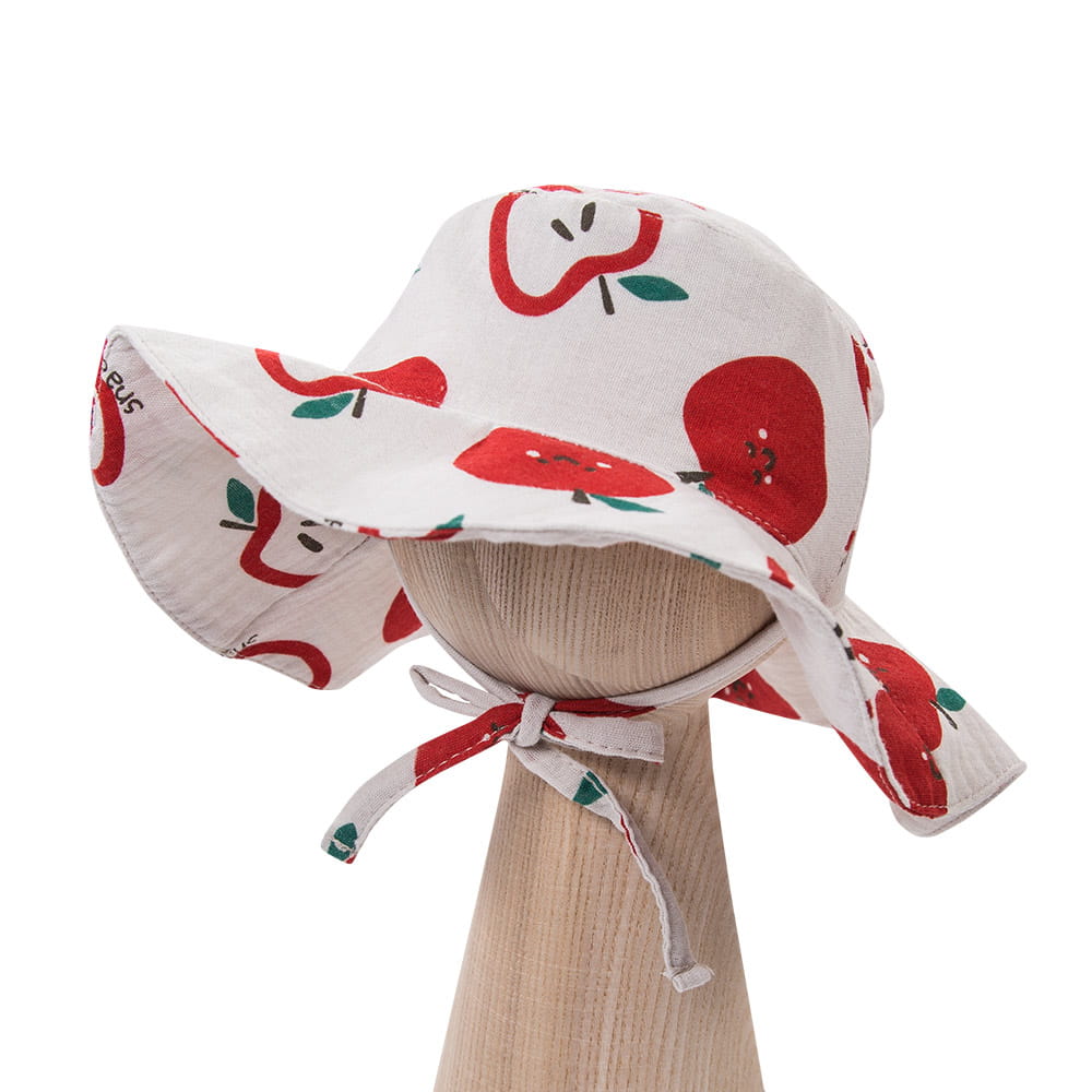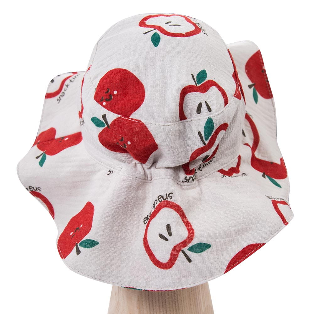 Kapelusz dziecięcy muślinowy ecru w jabłuszka – kolekcja Snack Time