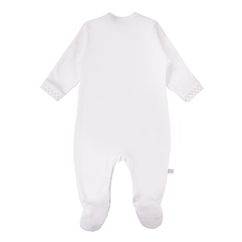Pajac dziecięcy z kolekcji Newborn to wygodna i funkcjonalna propozycja dla najmłodszych. Wykonany z 100% miękkiej bawełny, zapewnia komfort noszenia i jest delikatny dla wrażliwej skóry dziecka. Dzianina w klasycznej bieli, przełamana subtelnymi nadrukami, nadaje ubranku uroczy charakter.