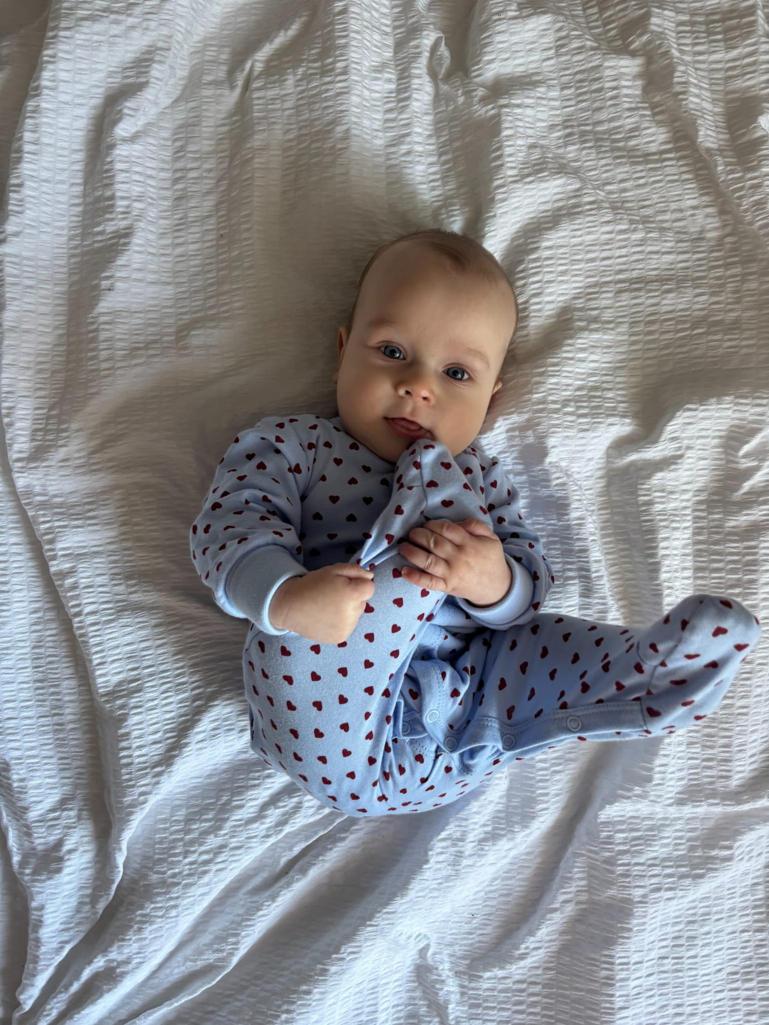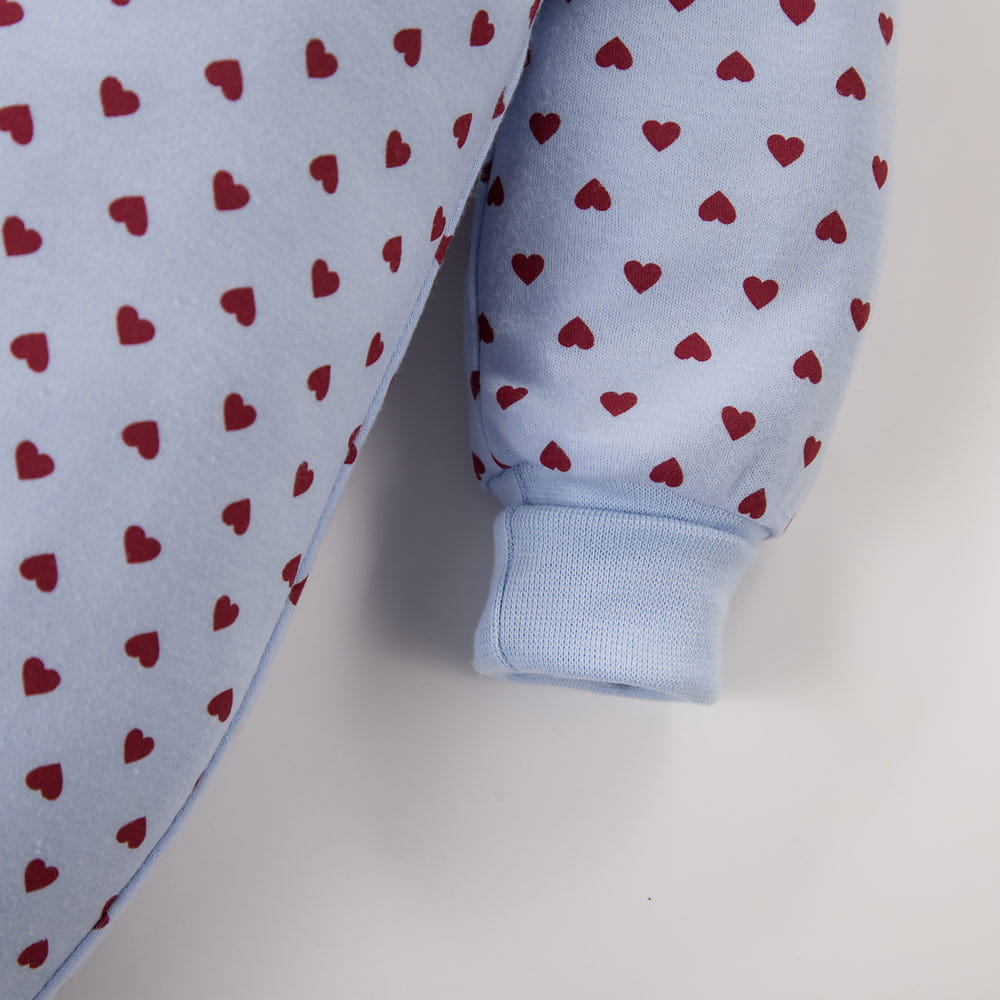Pajac niemowlęcy niebieski w serduszka z wywijanymi rękawkami – Walentynki