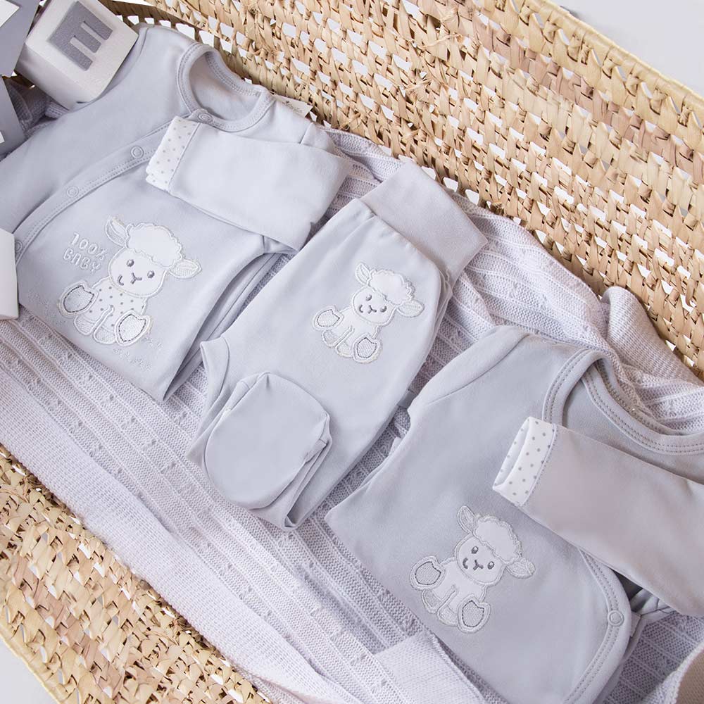 Półśpioch niemowlęcy szary z owieczką – Kolekcja Newborn