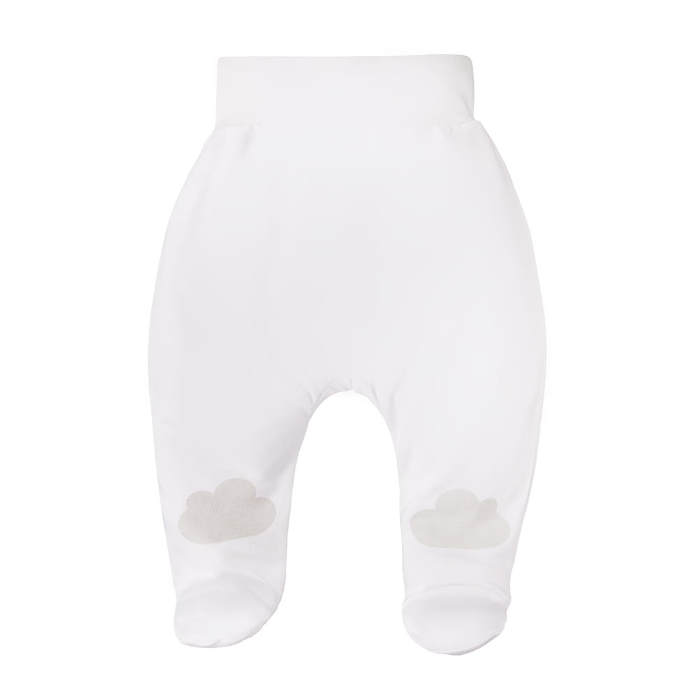 Półśpiochy niemowlęce z kolekcji Mellow zostały uszyte z miękkiej i przyjemnej w dotyku dzianiny bawełnianej, zapewniającej komfort i bezpieczeństwo dla delikatnej skóry dziecka. W pasie półśpiocha wszyty jest ściągacz, który nie uciska brzuszka maluszka. Nogawki zdobią urocze chmurki nadrukowane na materiale. Zakryte stópki chronią maluszka przed chłodem, co jest dodatkowym atutem dla rodziców.