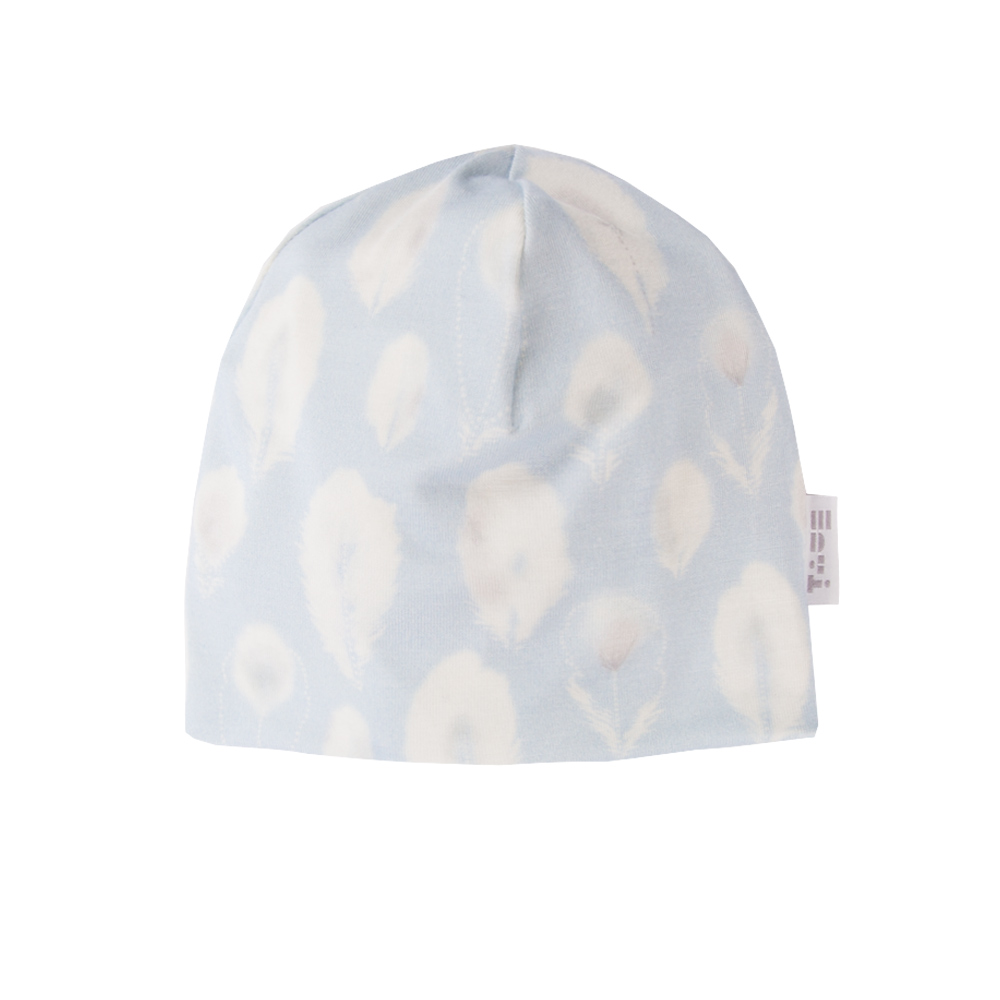 Komplet utrzymany jest w niebieskiej kolorystyce z uroczym wzorem piórek. Nadruk wykonany metodą cyfrową sprawia, że materiał pozostaje wyjątkowo miękki, a wzór nie jest wyczuwalny pod palcami.